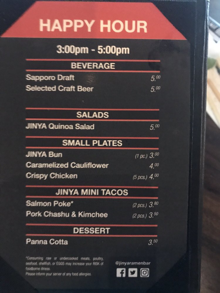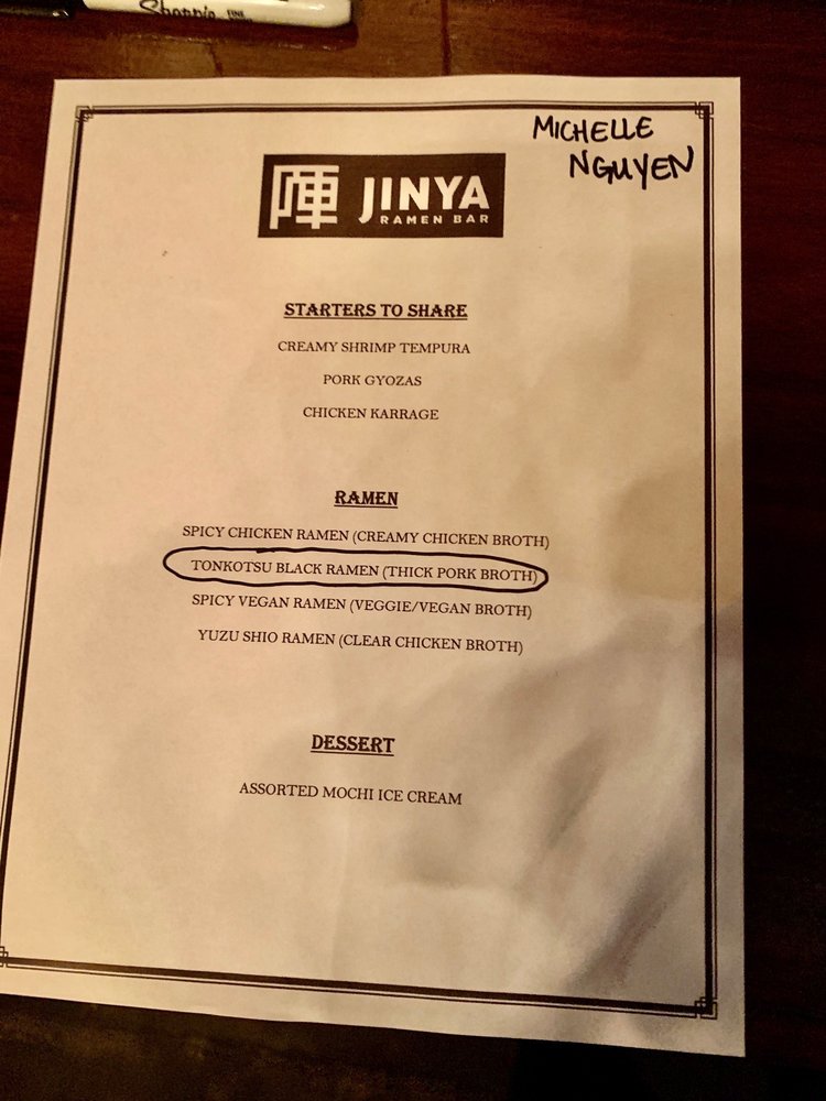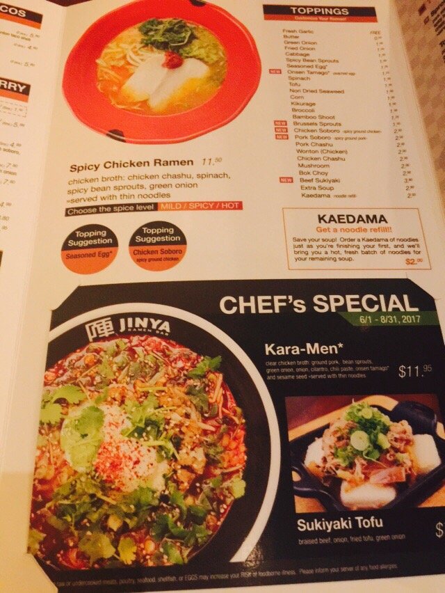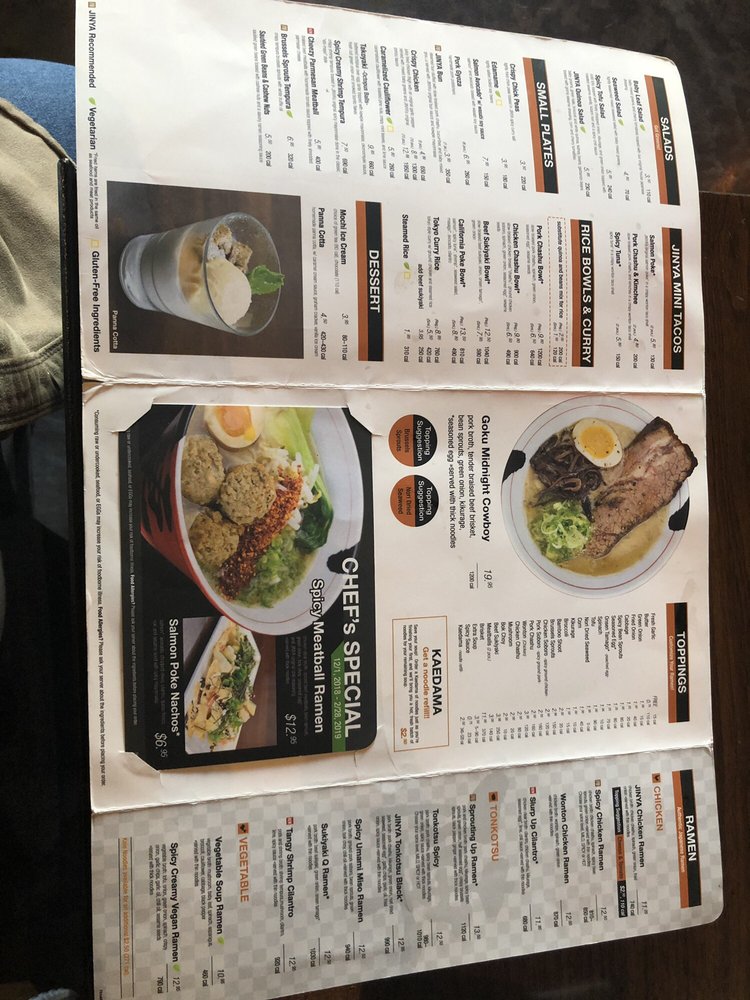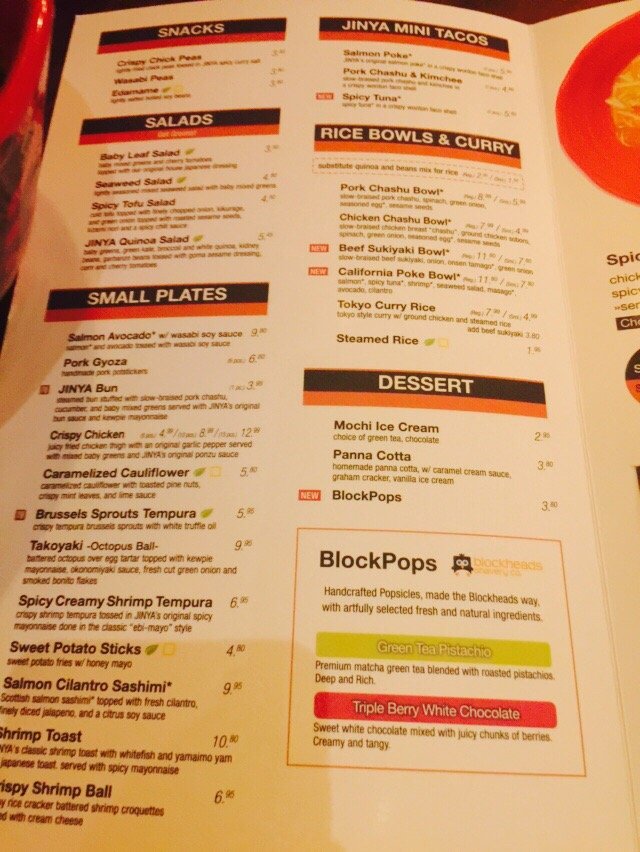 Introducing the menu at JINYA Ramen Bar - Katy, a trendy and casual ramen spot in Katy, TX. With a variety of topping options like bamboo shoot, chicken chashu, and ImpossibleTM meat, customers can customize their bowl to their liking. Chef's Special dishes like Curry Rice Croquettes and The Red Garnet offer unique flavor profiles for adventurous eaters. The Flying Vegan Harvest and JINYA Chicken Ramen are customer favorites, with rave reviews praising the vegan options and attentive service. The Tonkotsu Black ramen is a must-try for pork lovers, while the Salmon Poke Mini Taco makes for a unique appetizer. Overall, JINYA Ramen Bar - Katy offers a diverse menu with something for everyone, served in a clean and chill atmosphere by friendly and attentive staff members.